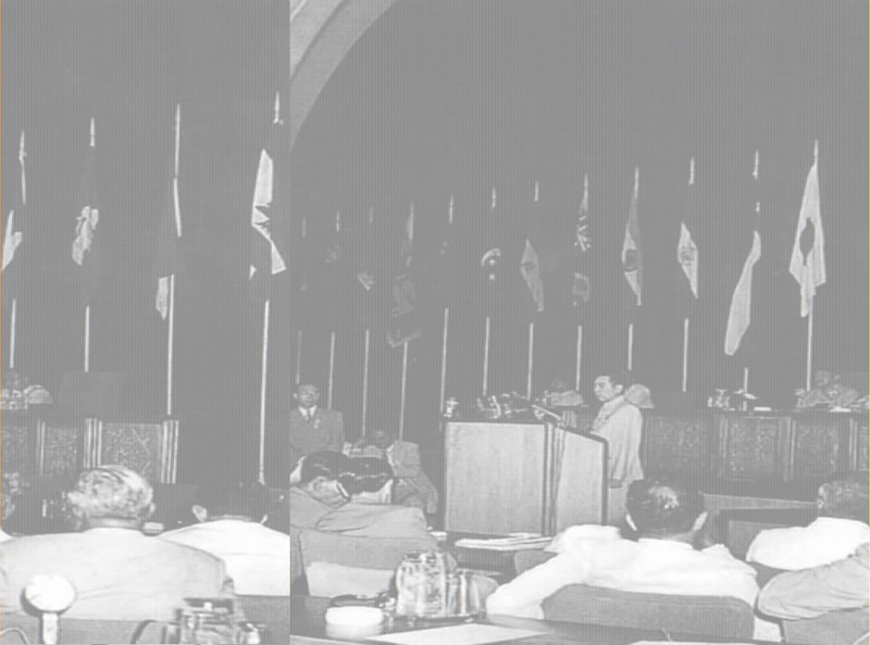 1955年4月,由亞非新獨立國家參加的萬隆會議召開,確定了和平共處五項原則。中國代表團團長周恩來總理在大會上發言。