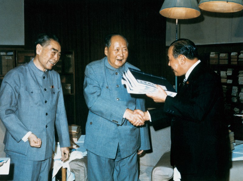 1972年9月,毛澤東主席、周恩來總理在中南海會見日本首相田中角榮。中日兩國實現了邦交正常化。
